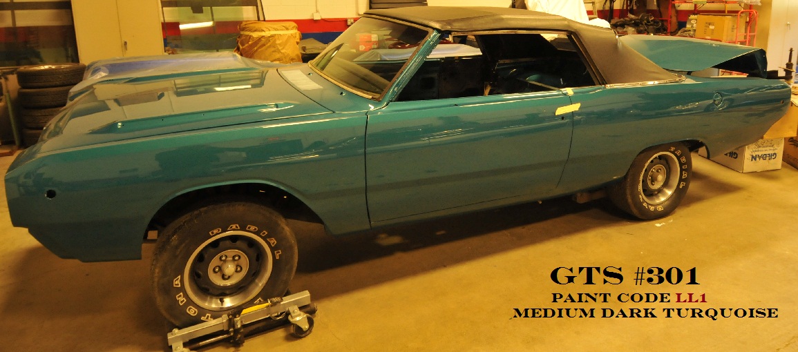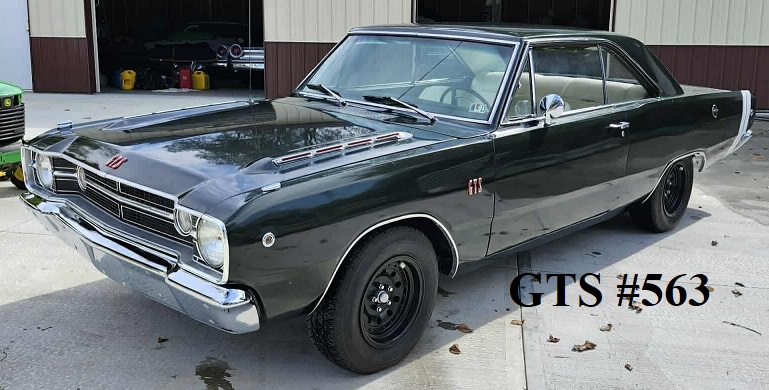 - LP27H72355***: GTS#140: 8/20/2022 OWNERSHIP UPDATE GTS #140 is now owned by Roger and Dianna Z. After sitting in a garage for over 8 years Roger has resurrected this GTS to good running order!! Ownership Update: Now owned by Bill S. from AZ. This is a "celebrity" 1967 GTS!! Dark Turquoise metallic with a black interior and black convertible top!! It's rare to start with but being a 4 speed car makes this a truly rare GTS. Featured in the Dodge Dart and Plymouth Duster book written by Steve Statham, I'm sure some of you have seen this GTS before and know just how fine this car is. Formerly owned by Chris from North Carolina. Jim R.,(Member#25) listed above, helped Chris locate this car.