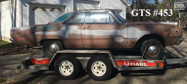 - LP23H72369***: GTS#502: OWNERSHIP UPDATE Rob D. from North Carolina picked up GTS #502 from a friend who had purchased it from Brandon in Ohio. HEre is the original listing: Brandon C. is a returning veteran from Iraq and he just bought his grandfather's 1967 383 4 speed GTS. #1-THANKS for serving your country Brandon!!!!!! Grandpa bought the GTS with only 42k miles on it. He had the 383 stroked to 413 then had a problem with the installation of a set of headers. Disappointed, Grandpa stored the GTS under blankets for the next 20 years near Cleveland, OH. Brandon has returned from his deployment, and is now putting the pieces of the '67 GTS puzzle back together.