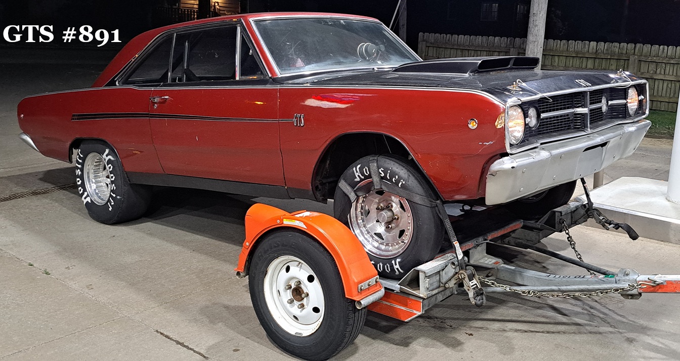 - LP23H72365***: GTS#362: OWNER UPDATE Will A. now owns GTS #362. Here is the original listing: This is a VERY late build 1967 GTS owned by Dan T. from New Jersey. Possibly the LAST GTS built for 1967?? Dan does not have the fender tag of this vehicle so he does not know the original color. Don't let the SubLime paint, 1969 style bumble bee stripe, or the 68 hood with '69 call-outs fool you. The car sports a era-correct set of fiberglas fenders, fenderwell headers, roll cage with trimmed back seat, no interior arm rests, mini tubbed rear wheel wells, and a NHRA fuel cell in the trunk from 1967 as well. Dan reports that this 1967 GTS was built for/by Grand Spaulding Dodge with these modifications.