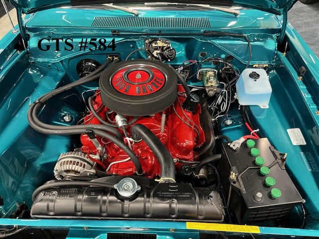 - LP23H72340***: GTS#586: Todd from Massachusetts owns this original 1967 383 GTS that was built in May, 1967. Formerly painted RR1 Bright Yellow, it is now Blue but the GTS retains its black interior. The 383 is backed by a 727 auto trans and 3.23 gears.